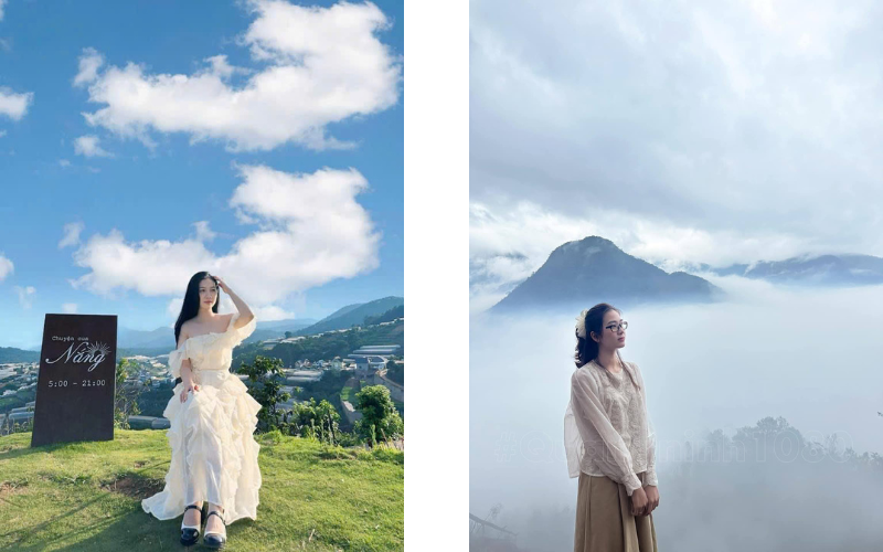 Chuyện của nắng: Chụp ảnh lấy backgroup Đà lạt mộng mơ, hòa trong ánh nắng với bầu trời xanh, mấy trắng