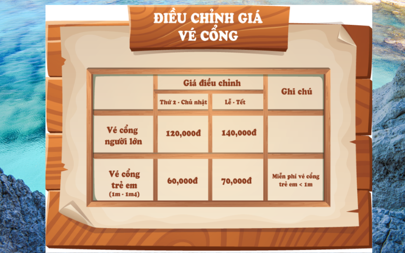 Miễn phí vé vào cổng cho trẻ em có chiều cao dưới 1m