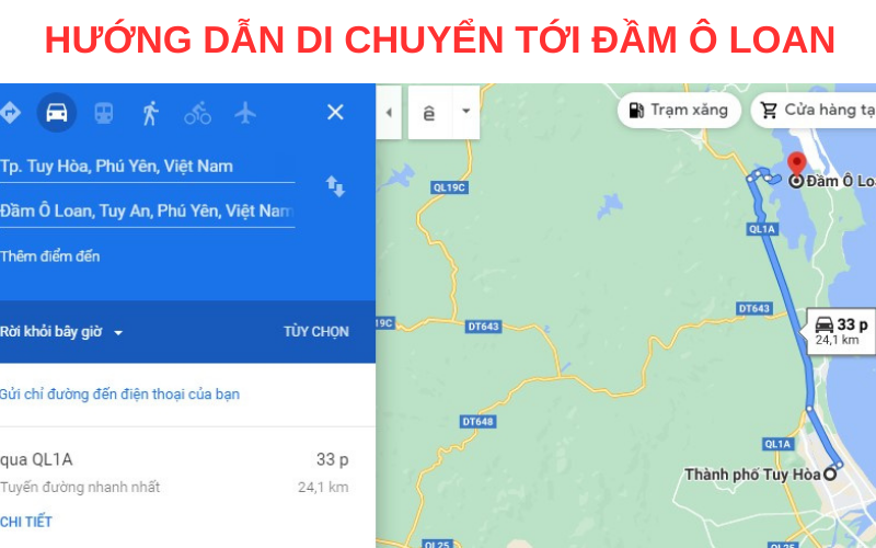 Nếu bạn ở các tỉnh nam trung bộ từ Nha Trang - Miền Nam các bạn di chuyển ra thành Phố Tuy Hòa, từ Tuy Hòa bạn có thể đi taxi hoặc xe máy theo đại lộ Hùng Vương đến quốc lộ 1A, sau đó bạn đi ra phía Bắc theo hướng Phú Yên đi Hà Nội khoảng 23 km, mất khoảng 35 phút di chuyển sẽ tới đầm Ô Loan
