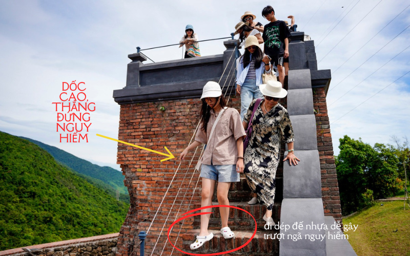Thứ hai: leo lên Hải Vân Quan địa hình khá nhiều dốc, bậc cấp bạn nên chuẩn bị cho mình giày ba ta hoặc giày đế mềm tránh đau chân hoặc trượt ngã khi di chuyển.
