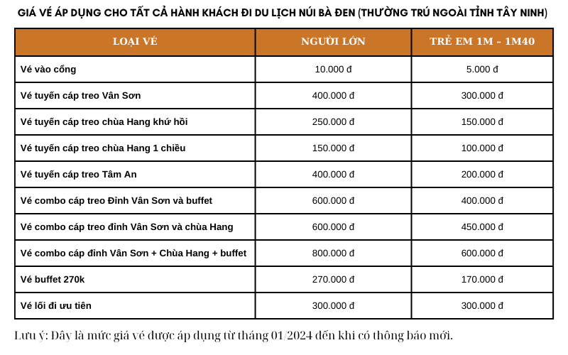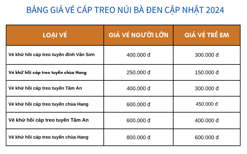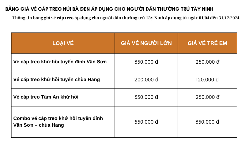 ( Dưới đây là bảng giá tham khảo cập nhật 2024, để biết thông tin chính xác vui lòng truy cập https://www.vecaptreonuibaden.com/)