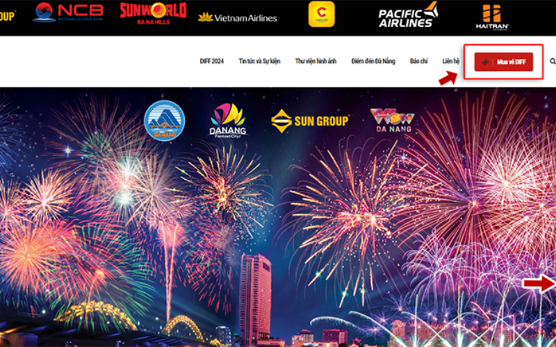 Trang web chính thức có tên miền: "diff.vn" bấm chọn vào chức năng Mua vé và làm theo hướng dẫn