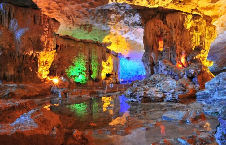 hệ thống thạch nhũ dày đặc trong động Thác Bờ Hòa Bình