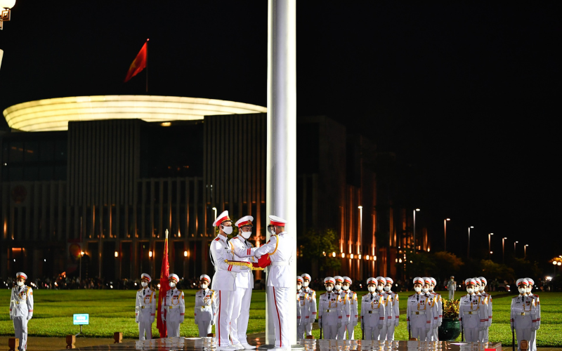 Lễ hạ cờ diễn ra vào lúc 21h tối mỗi ngày, bạn có thể đứng từ xa để quan sát và trải nghiệm