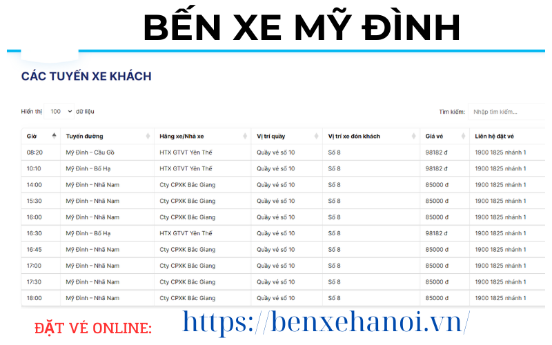 + Tuyến 109: Nội Bài - Mỹ Đình 8.000 VND/lượt. (20 - 30 phút/chuyến, phục vụ từ 5h00 - 22h00)